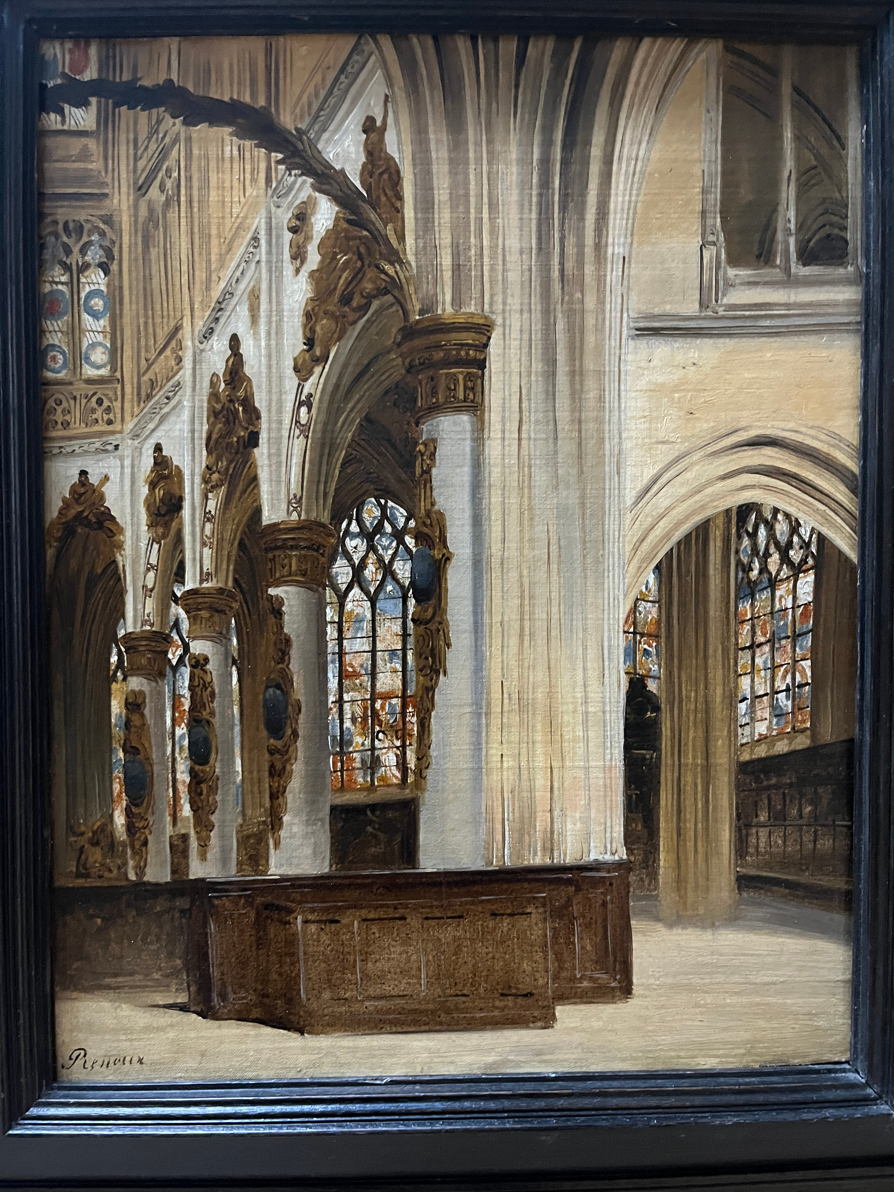 Œuvre en rapport : tableau exposé au Salon de 1834, titré Intérieur de l’église Saint-Vincent, à Rouen, sous le numéro 1630, pour lequel notre huile est un travail préparatoire.